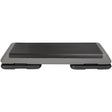 The Aerobic Exercise Step builds endurance by simulating stair inclines. The top platform features a non-skid surface. Four height adjustable blocks are included. Non-skid feet on the blocks prevent the unit from slipping on any floor surface. Platform is 4"H and each riser is 2"H. No more than three pairs of risers are recommended. Has a 300 lb. weight capacity.
