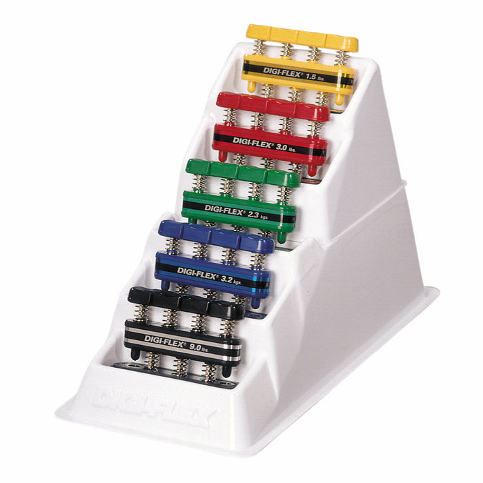 Hand exercisers often have one component that compresses allowing the stronger fingers to do all of the work. The Digi-Flex unit has four individual finger pads that each compress by themselves. This lets each finger work and prevents stronger digits from compensating for weaker ones which would inhibit recovery. The progressive colour-coded resistance options allow patients to monitor their progress over time.