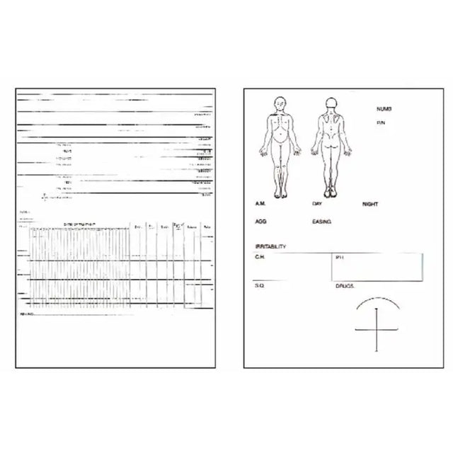 These Patient History Cards are created for functionality and convenience. The 5”x8” version is printed on both sizes and is easy to keep in a folder or on a clipboard. The 10”x8” version folds to contain a pocket for patient notes and referrals and also includes an anatomy card. Comes in packs of 100 cards.